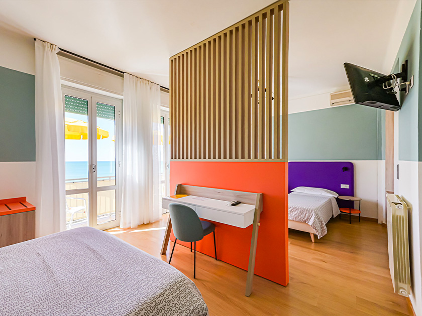 Quadruple spaziose, personale gentilissimo, un enorme parcheggio a disposizione, accesso al mare con terrazze dotate di lettini, un piccolo accesso al mare per fare il bagno.
